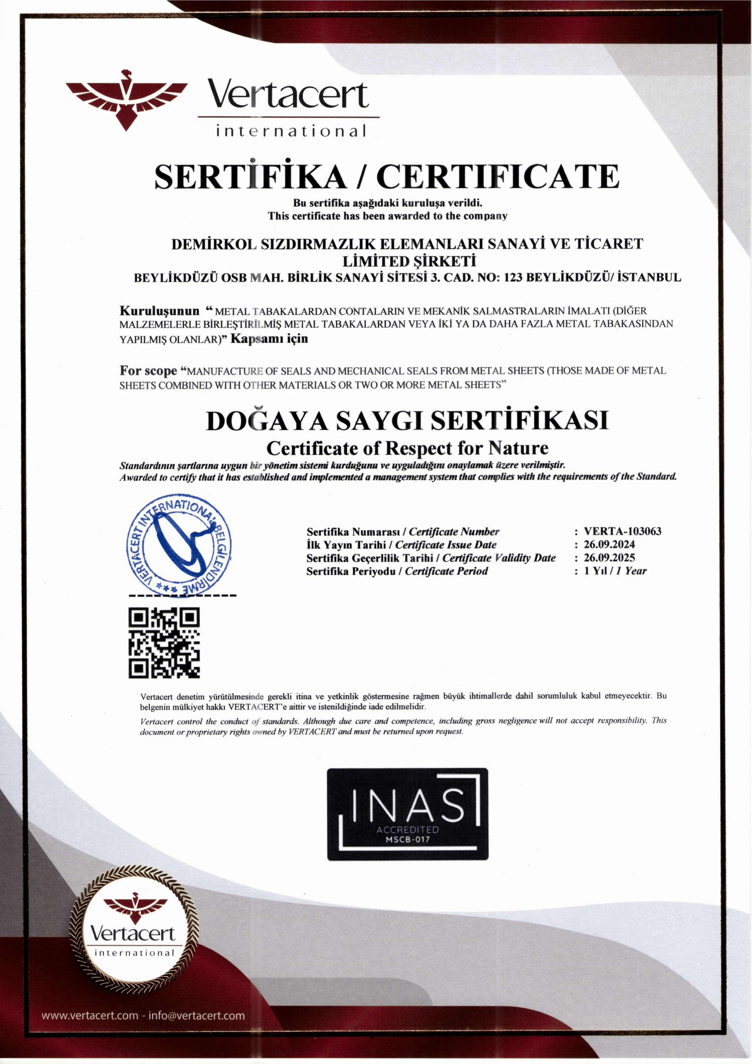 DOĞAYA SAYGI SERTİFİKASI