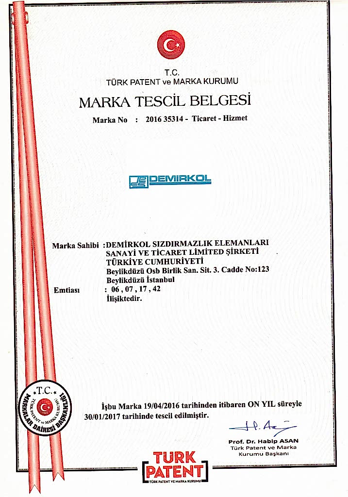 DEMİRKOL MARKA TESCİL BELGESİ